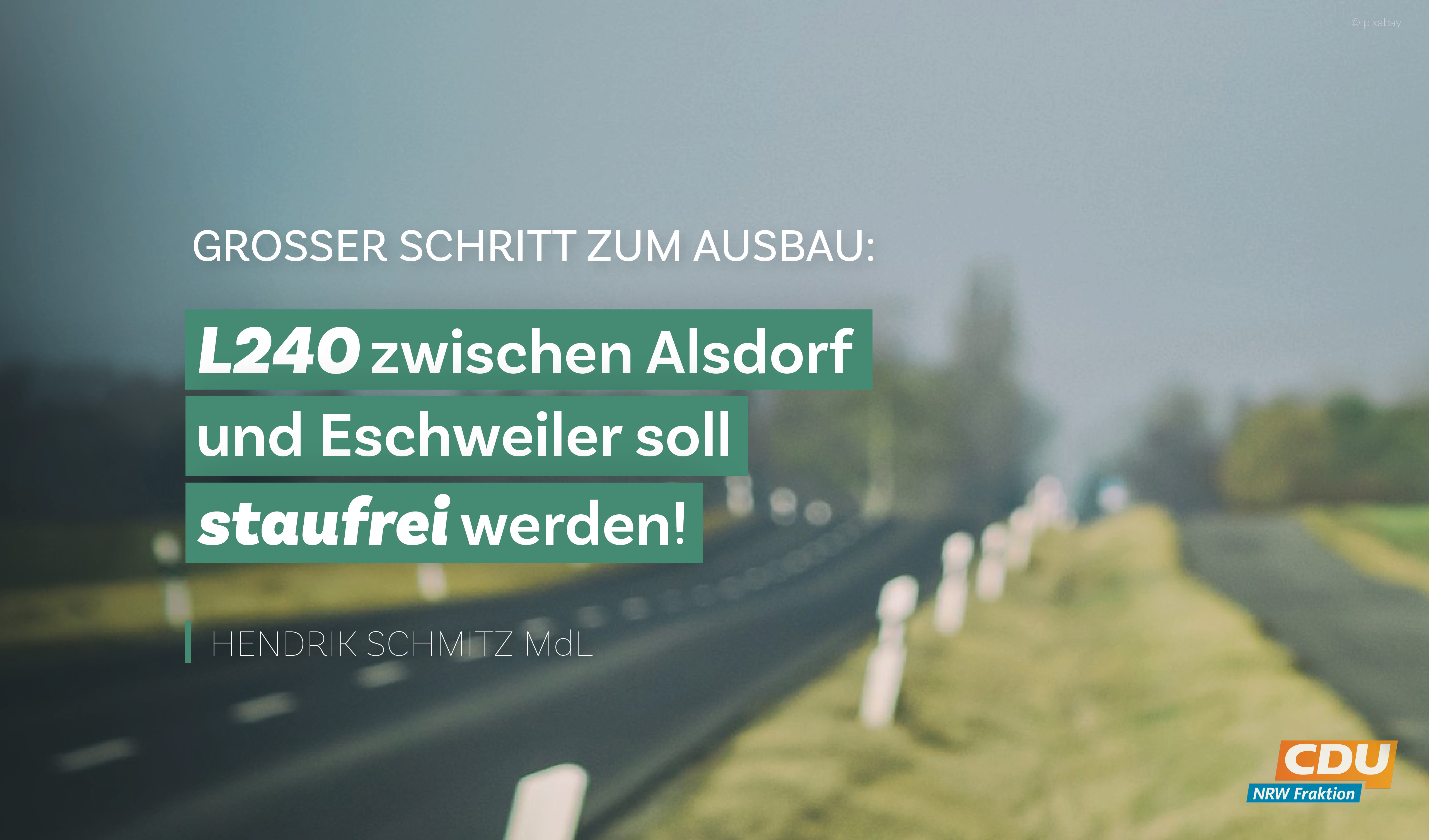 Denn die Diskussion um eine Erweiterung der L240 zwischen Alsdorf und Eschweiler begleitet uns nun schon seit geraumer Zeit. Das Verkehrsaufkommen nimmt auf dieser Landesstraße stetig zu. Die L240 übernimmt eine wichtige Verkehrsfunktion für unsere Heimat und ist leider ist in dieser Funktion jetzt schon stark überlastet. Durch den jahrzehntelangen Baustopp von Straßen im ganzen Land, stand der Ausbau der L240 weit hinten auf der Liste.